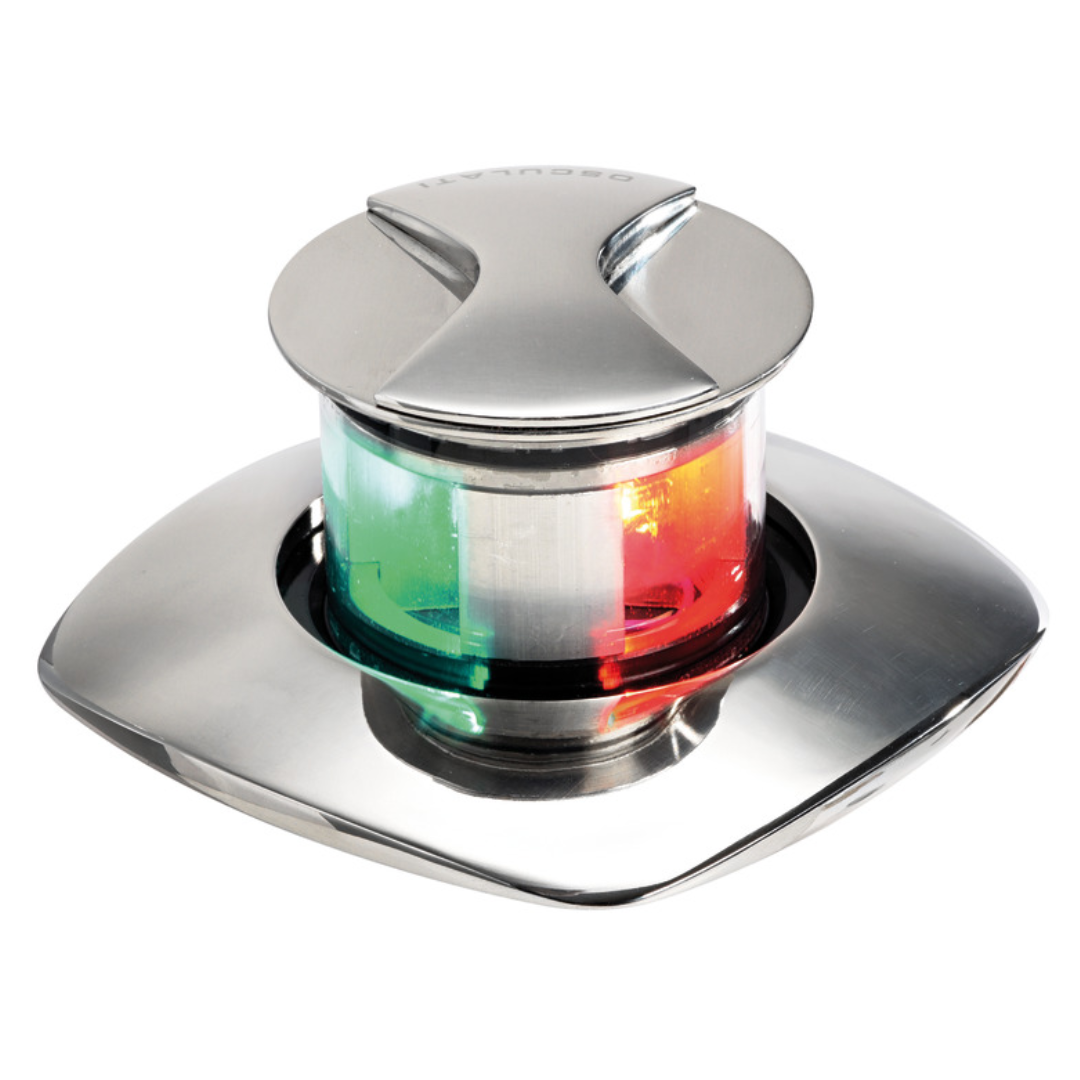 Approved LED navigation lights (COLREG 72), for boats and vessels up to 20 meters. Body in technopolymer and mirror-polished 316 stainless steel. Innovative retractable system; a slight rotation of the plate raises the light to its operating position.