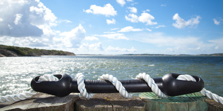 Ammortizzatori stabilizzanti svedesi per ormeggio in gomma EPDM (indistruttibile) tale da prolungare la vita di cime e bitte compensando il carico della cima e delle bitte causato dall'ondeggiare della barca.