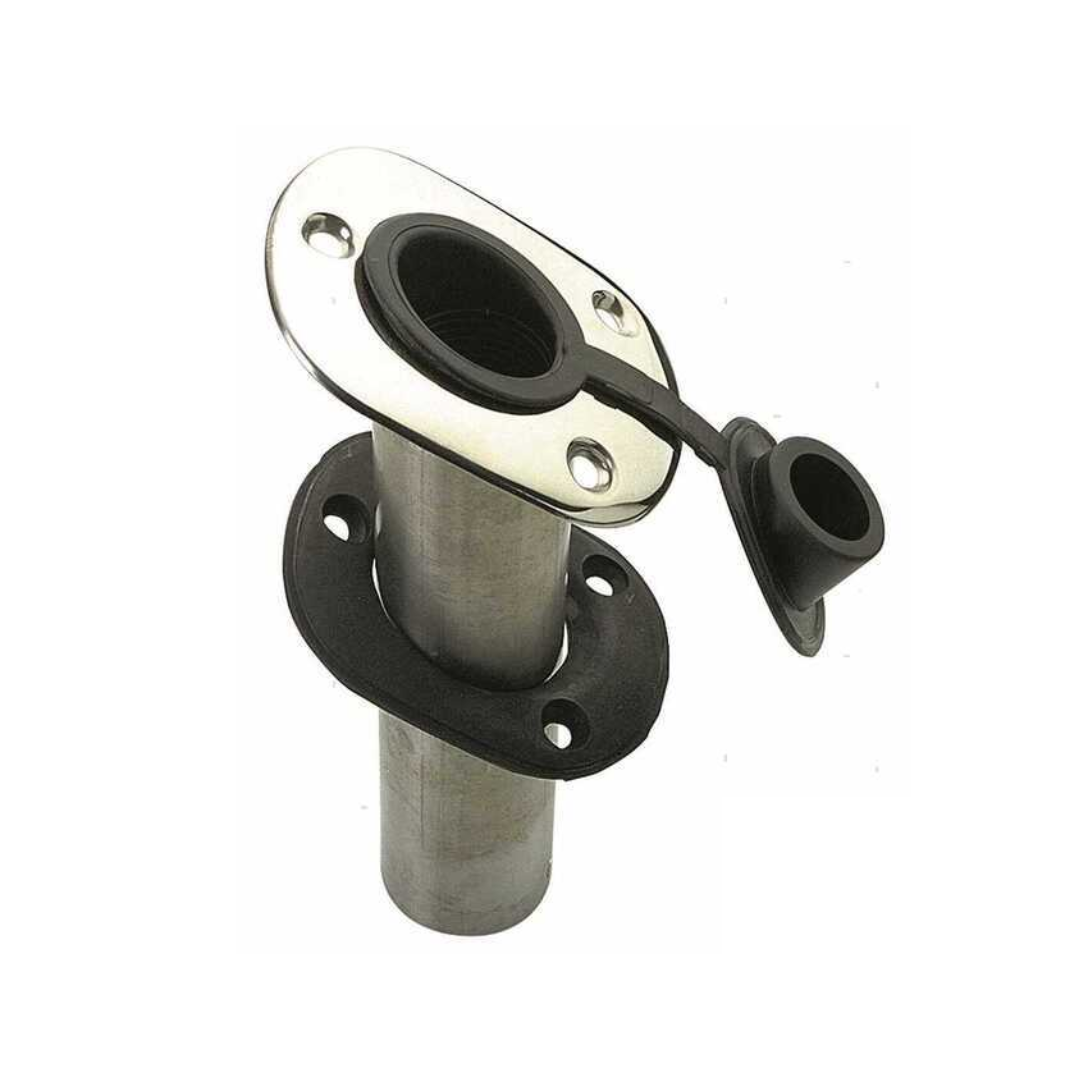 Boccola ad incasso portacanna in acciaio inox + boccola in PVC impermeabile a protezione. Disponibile in due angolazioni della base: 15°, 45°
