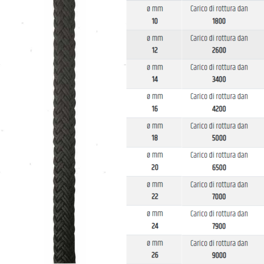 Cima Moorline a doppia treccia da ormeggio Nera (al metro)