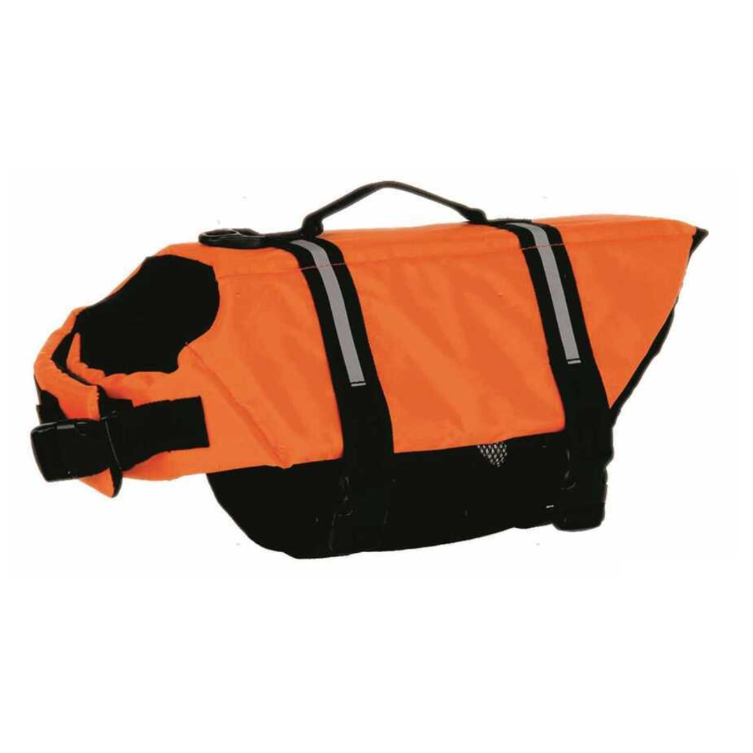 Giubbotti di salvataggio regolamentari per cani, disponibili in diverse taglie in base al peso. Dotati di cinghie regolabili per una perfetta adattabilità su vita e collo, includono una pratica maniglia per il sollevamento.