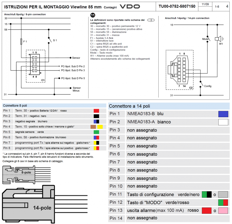 Strumentazione VDO gamma "Black view" di primissima qualità. Doppio vetro antiappannamento. Grado d'impermeabilità IP67. Illuminati a LED. Produzione Svizzera.