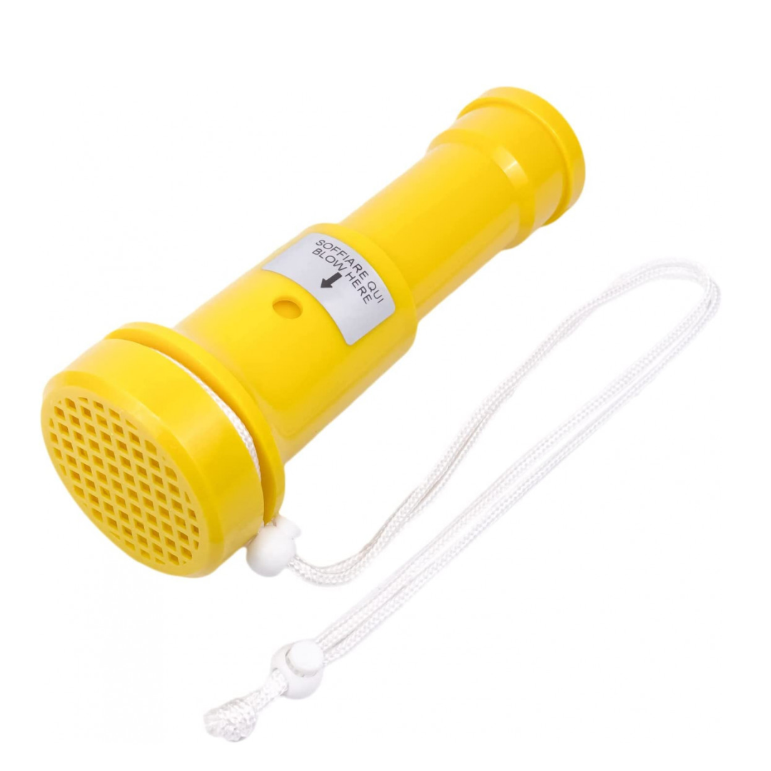Corno da nebbia in plastica rinforzata, suono potente. Progettato per la navigazione in condizioni di nebbia. Soffiando dal forellino di lato la tromba suonerà.