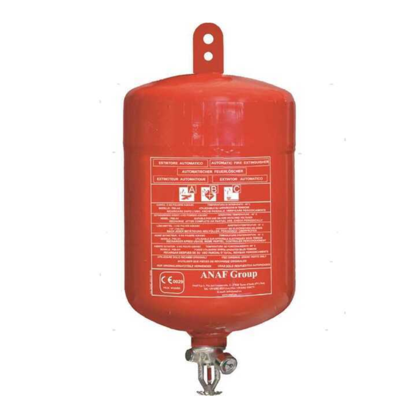 Estintore automatico per vani motore entrobordo. Omologazione CE0029. Si attivano alla temperatura di 68°<>79°. Per classi d'incendio ABC. Varianti 1kg-3kg-6kg.