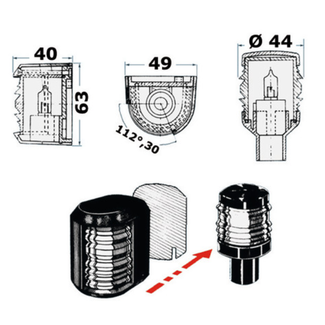 Fanale DX rosso "Utility compact" scocca bianca