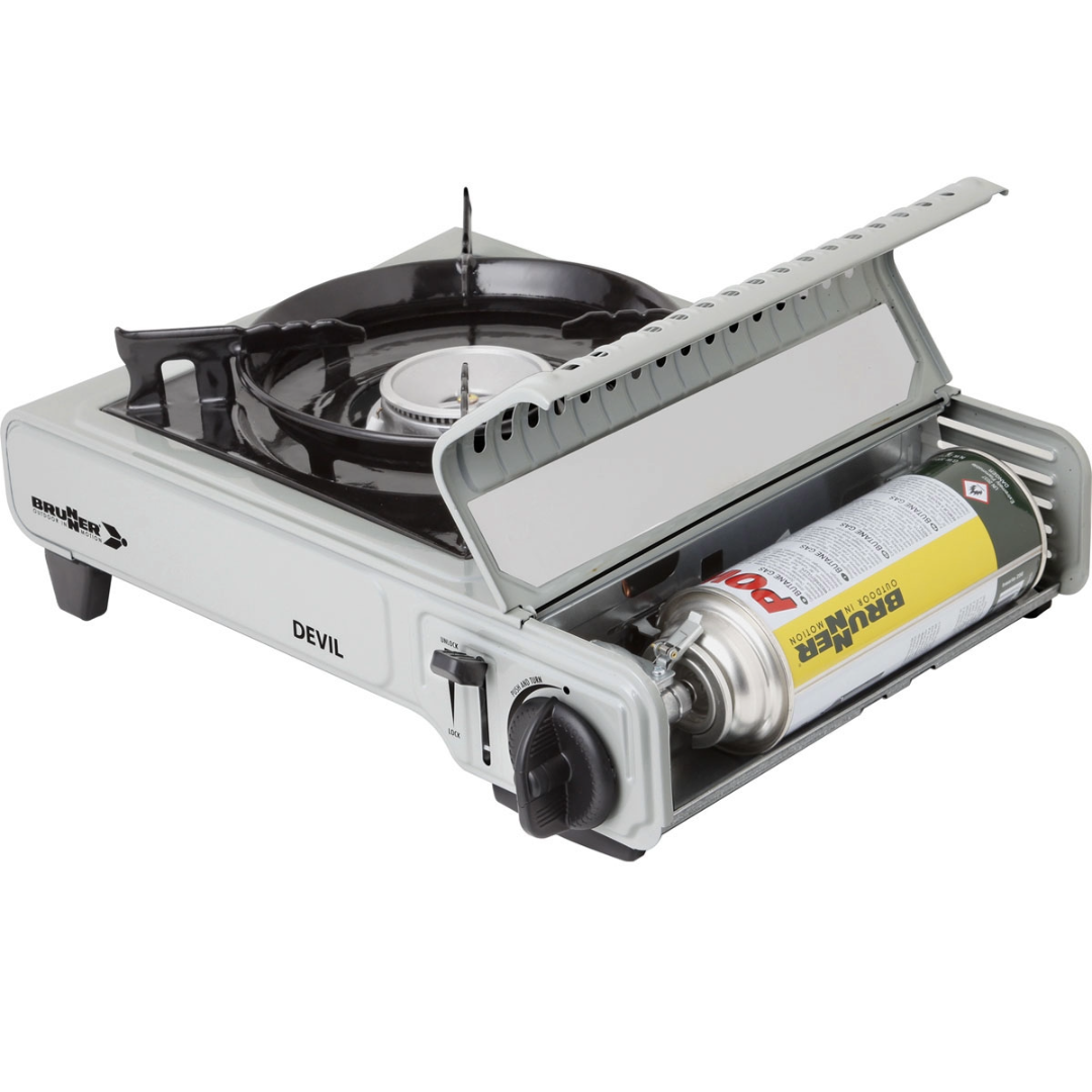 Il Fornello portatile Devil è dotato di accensione piezoelettrica integrata, bruciatori in alluminio resistenti e carcassa in acciaio inox. Il flusso del gas è regolabile per garantire un'ottima esperienza di cottura. Inoltre, è completo di una comoda valigetta di trasporto e funziona con cartucce di gas (non compresa). Non è necessaria una termocoppia per il suo utilizzo.