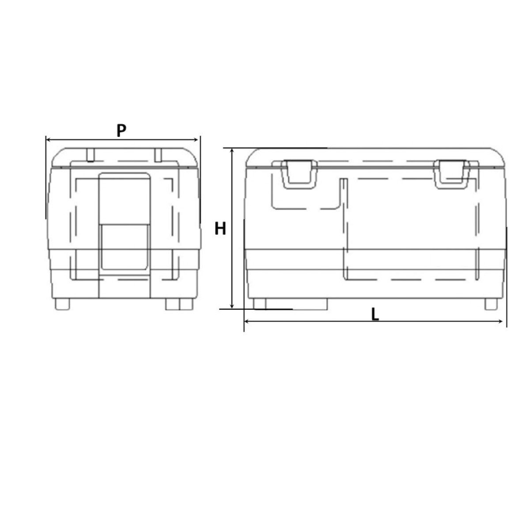 Struttura in Tecnopolimero. Intercapedine schiumata con microcelle di ciclopentane di produzione tedesca che ne garantiscono l'isolamento. Doppia maniglia per facilitarne il trasporto.