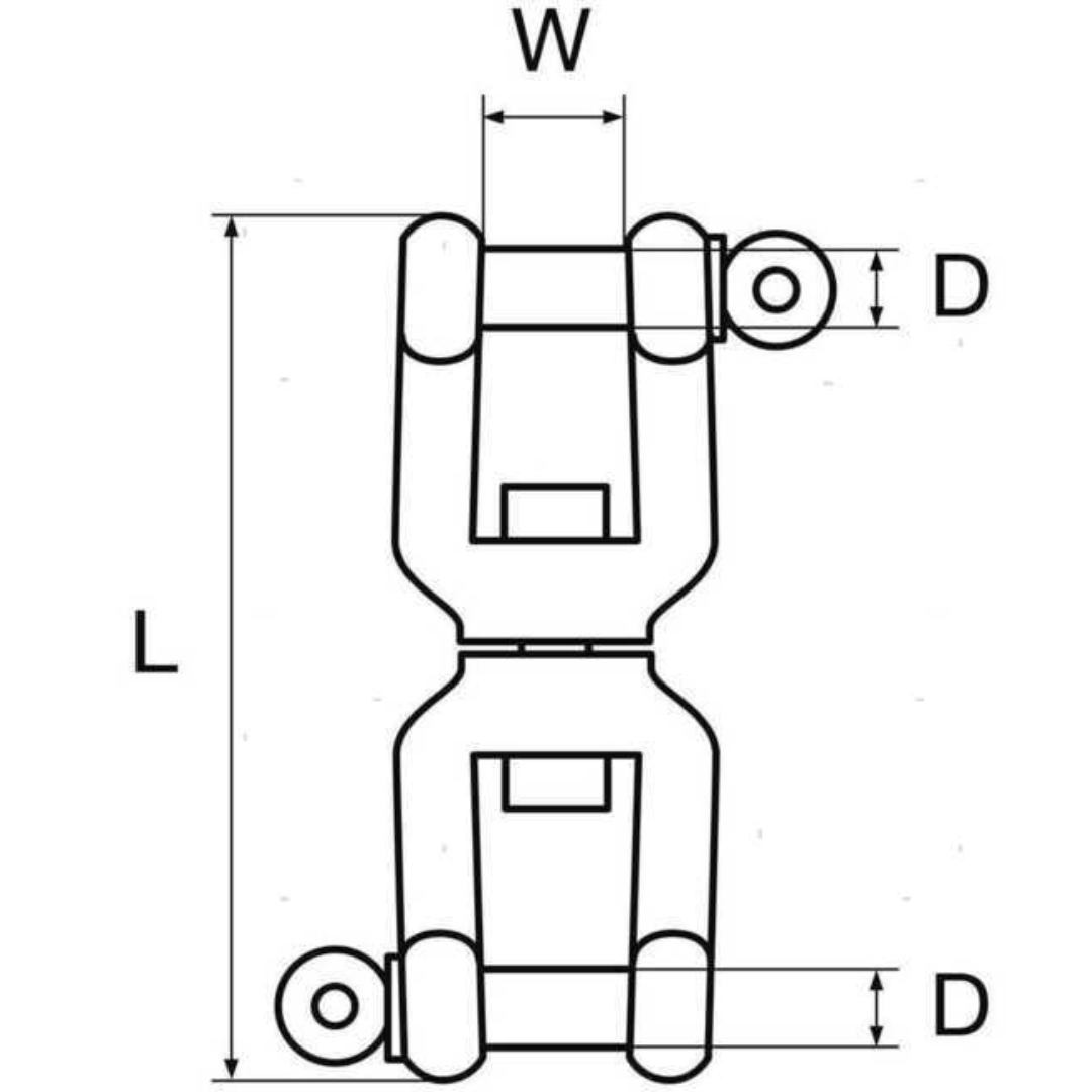 Girella con doppio grillo in acciaio inox 316 lucidato a specchio. Con perno a vite.