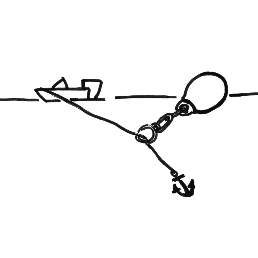 Anello salpancora + cima galleggiante + moschettone.