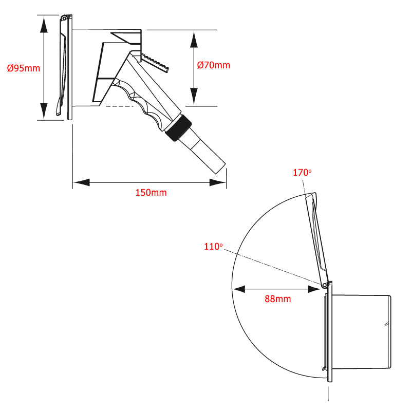 Kit completo per la doccetta composto da contenitore ad incasso in ASA resistente agli UV e alla salsedine, doccetta classica in ABS a pulsante con funzione di getto continuo e 3 metri di tubo in PVC con collegamenti già innestati.