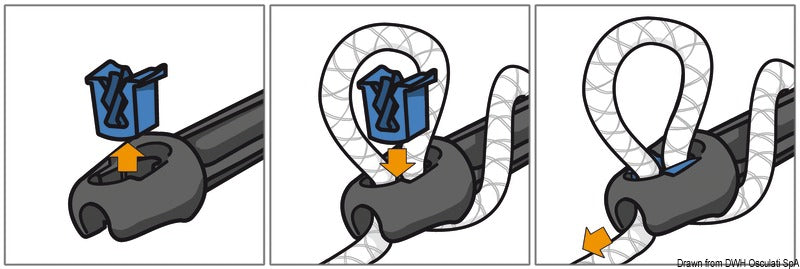 Ammortizzatori stabilizzanti svedesi per ormeggio in gomma EPDM (indistruttibile) tale da prolungare la vita di cime e bitte compensando il carico della cima e delle bitte causato dall'ondeggiare della barca.