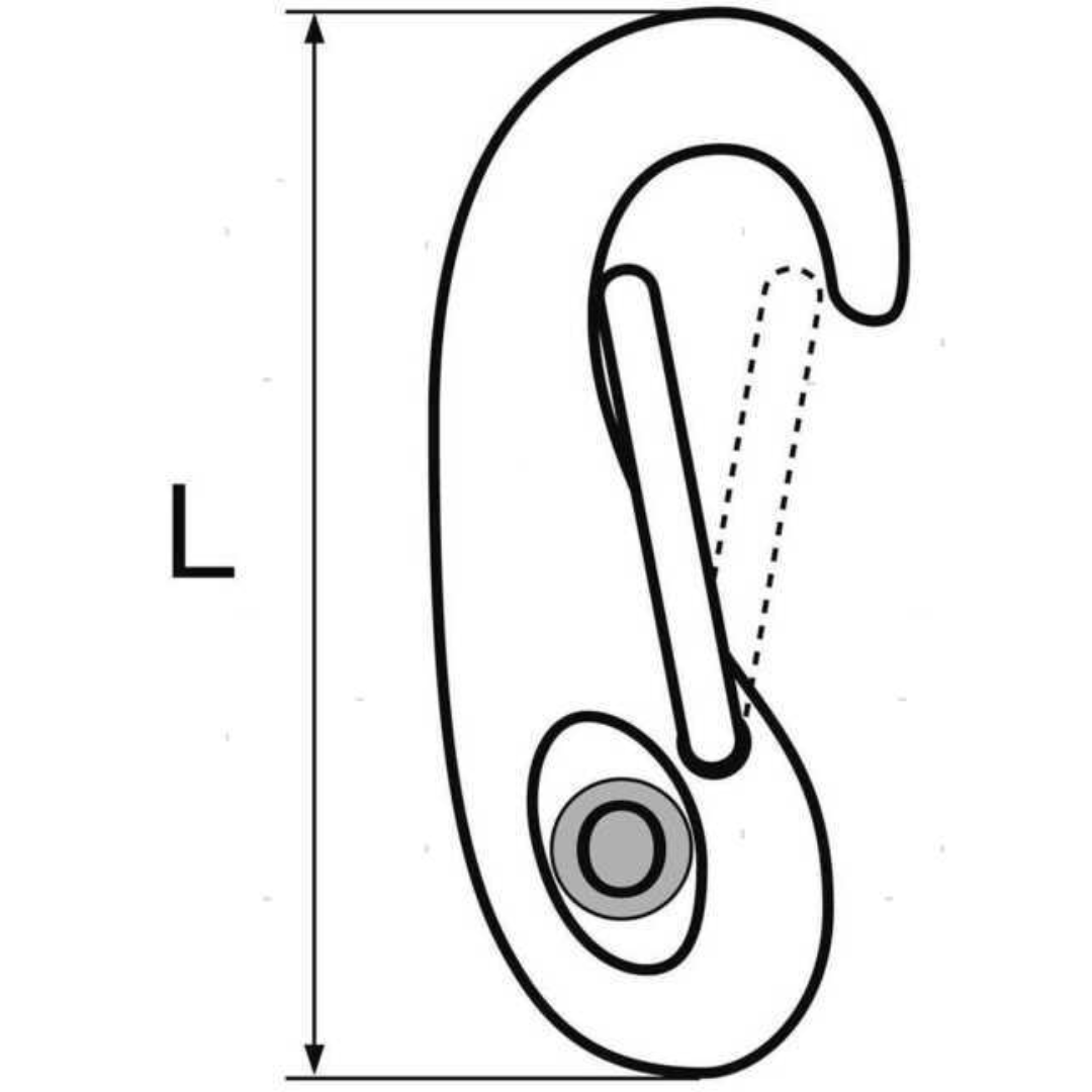 Moschettone chiuso in acciaio inox AISI 316, ideale per attaccare il fiocco a un golfare di prua in barca. Può essere cucito su una cinghia o fissato con un piombo su una cima. Disponibile in varie misure.