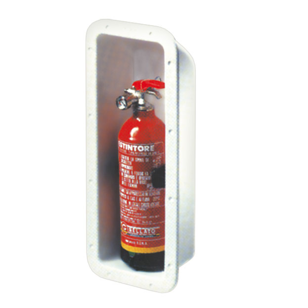 Alloggio per estintore realizzato in plastica antiurto senza sportello per estintori da 2 Kg.