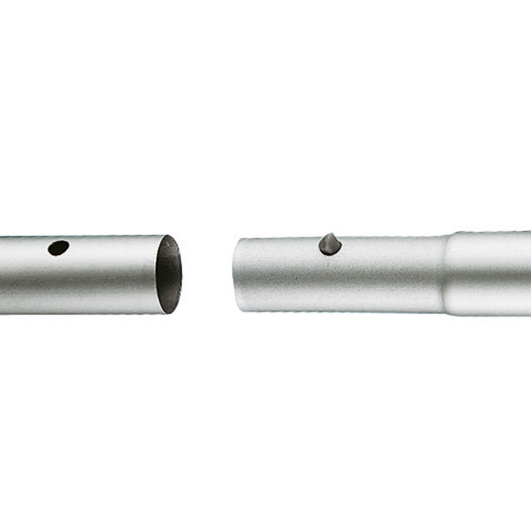 Pagaia a doppia pala leggera e robusta per canoe e kayak smontabile in due pezzi. Attacco rapido. Realizzata con tubo in alluminio anodizzato e pale in ABS.