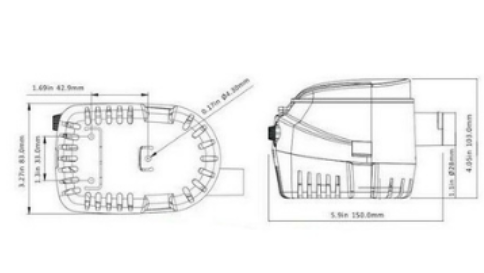 Pompa di sentina con galleggiante interno automatico. Si accende quando il livello dell'acqua supera i 5 cm e si spegne quando scende sotto i 2 cm. Albero in acciaio inox e corpo in ABS.