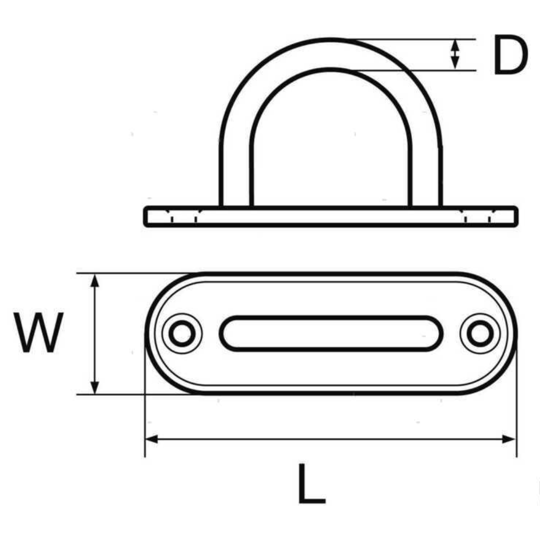 Ponticello su base a 2 fori in acciaio inox, ideale per fissaggio oggetti su ponte in barca. Disponibile in varie misure.