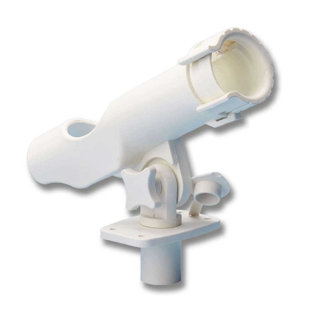 Portacanna orientabile ad incasso in plastica riforzata bianca. Grazie al suo design orientabile, è possibile regolare la lunghezza desiderata. Realizzato per l'incasso del porta scalmi. Foro da 40 mm per adattarsi a qualsiasi canna da pesca. Anello rotante con bloccoper orientarlo in qualsiasi posizione.