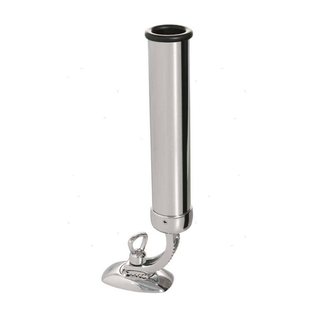 Portacanna orientabile sia in angolazione perpendicolare sia in rotazione a 360°. Fabbricato in ottone cromato, con boccola di protezione in gomma.