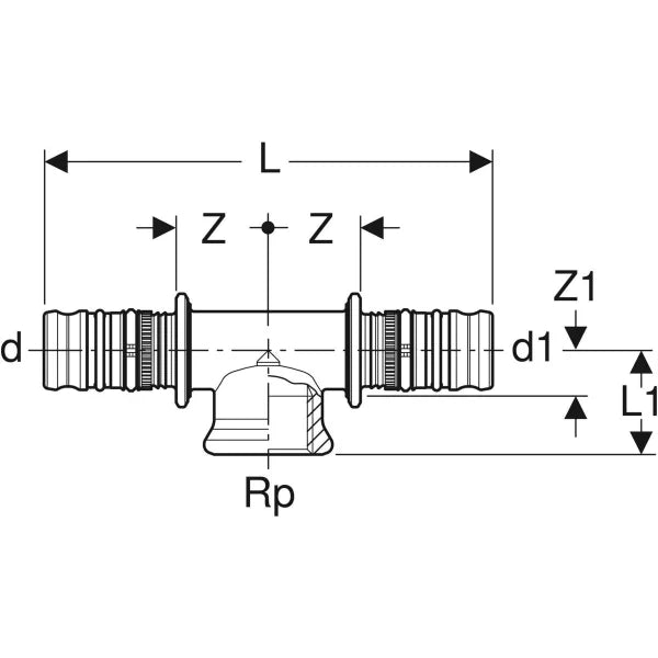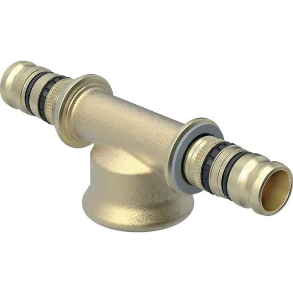 T-piece originale Geberit Mepla con attacchi a pressare e filettatura femmina, in ottone senza piombo. Impeccabile per impianti idraulici, riscaldamento, aria compressa, sistemi antincendio e navali.