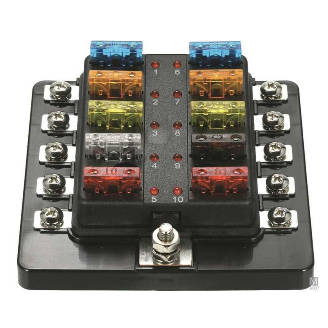 Scatola portafusibili a lama 10 posti terminale a vite impermeabile LED