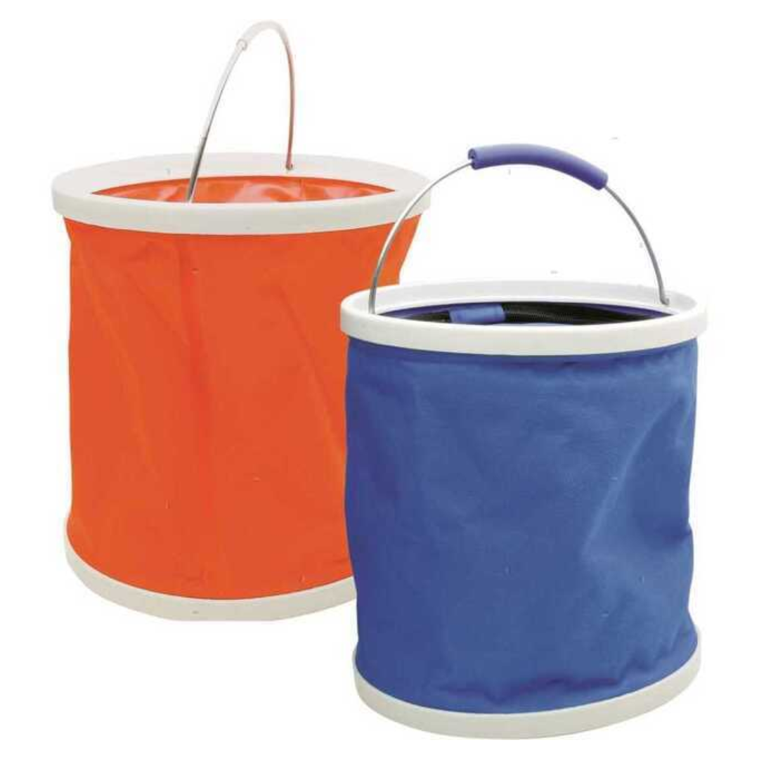 Secchio con maniglia in Acciaio inox con innovativo sistema richiudibile, ottimo per salvare spazio nei gavoni e trasportarlo senza fatiche. Contiene fino a 11 litri ed è realizzato in Poliestere rinforzato per una maggiore tenuta.