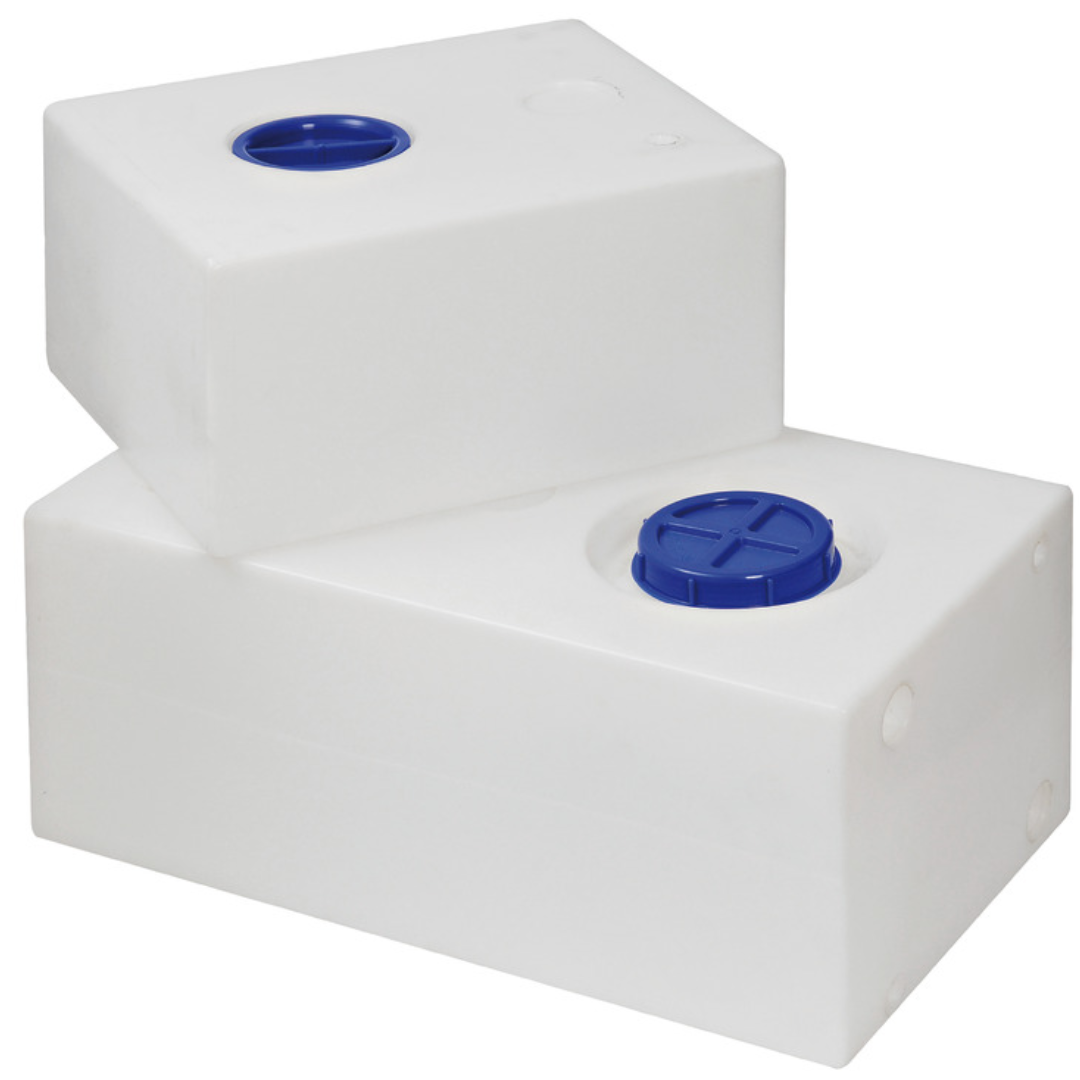 In polietilene bianco versione standard a sezione rettangolare. Adatti per essere installati nella parte centrale dello scafo o sotto il letto di prua. Forniti completi di tappo d’ispezione e 4 fori ciechi filettati da 1/2” - 1”1/4 ove vanno avvitati i portagomma di carico/scarico.