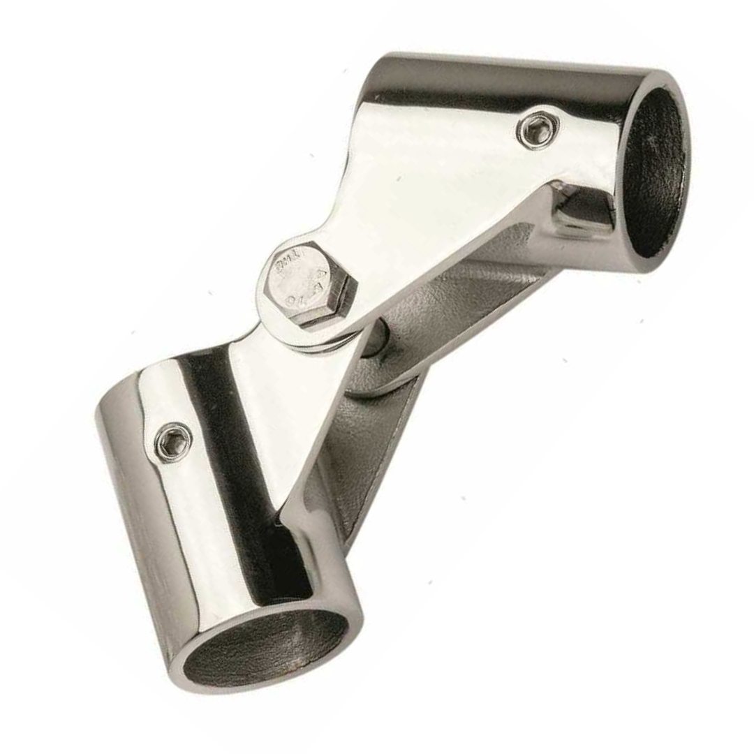 Snodo a 180° in acciaio inox lucidato a specchio per collegare tubi in acciaio di tendalini e cappottine in barca. Disponibile in varie misure a seconda del diametro interno.
