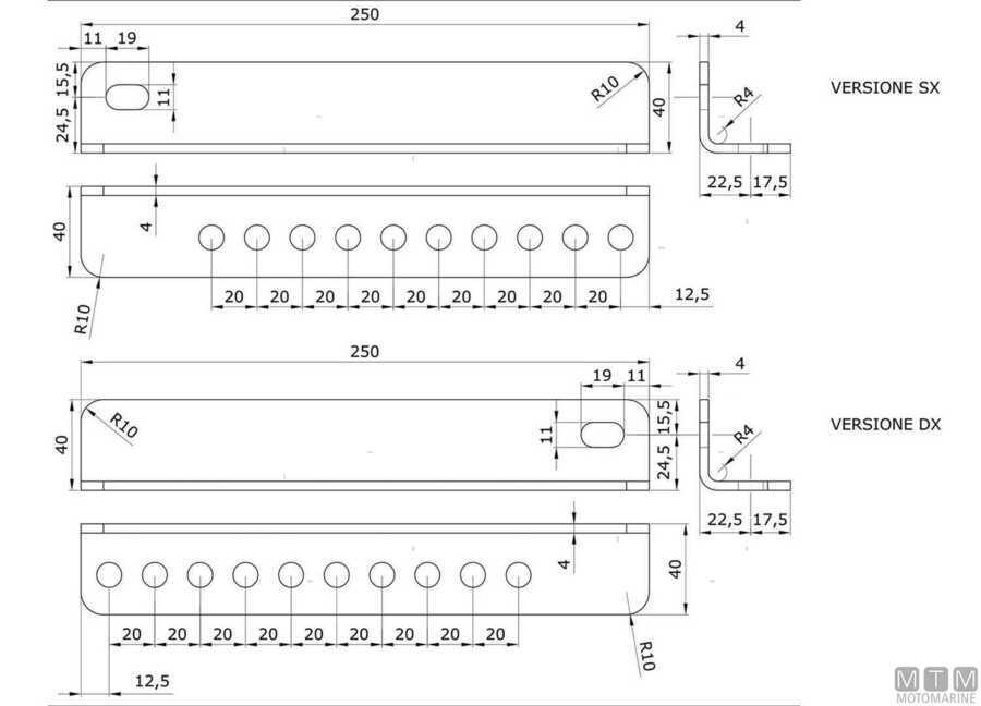 Dimensioni: 250 x H40 mm