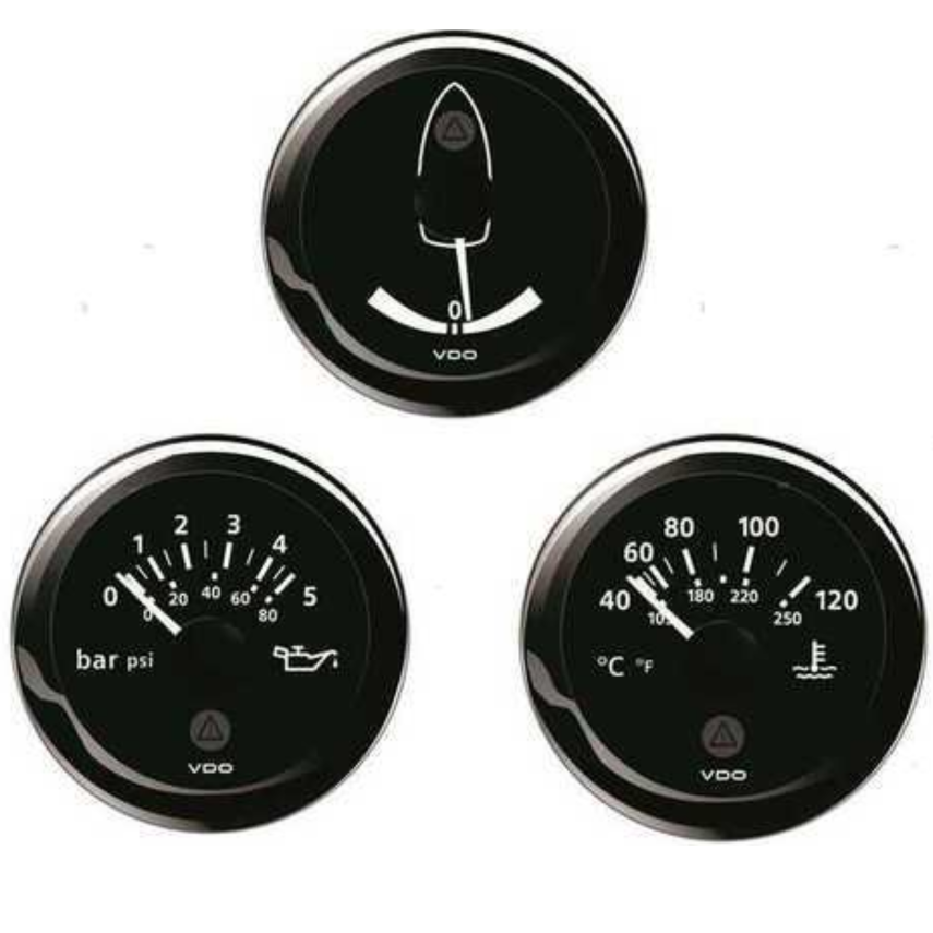 Strumentazione VDO gamma "Black view" di primissima qualità. Doppio vetro antiappannamento. Grado d'impermeabilità IP67. Illuminati a LED. Produzione Svizzera