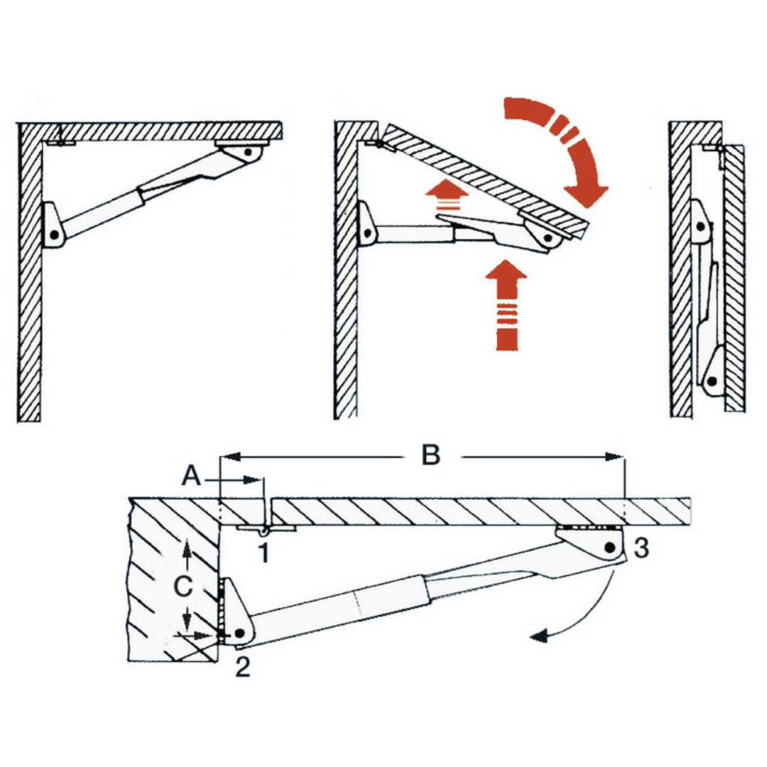 Supporto abbattibile per tavoli e mensole RAKEGO realizzato in alluminio anodizzato per resistere all'usura e all'umidità. Supporta fino a 60 Kg, è leggero, di facile installazione. Meccanismo a scatto brevettato RAKEGO assicura stabilità e durata nel tempo.