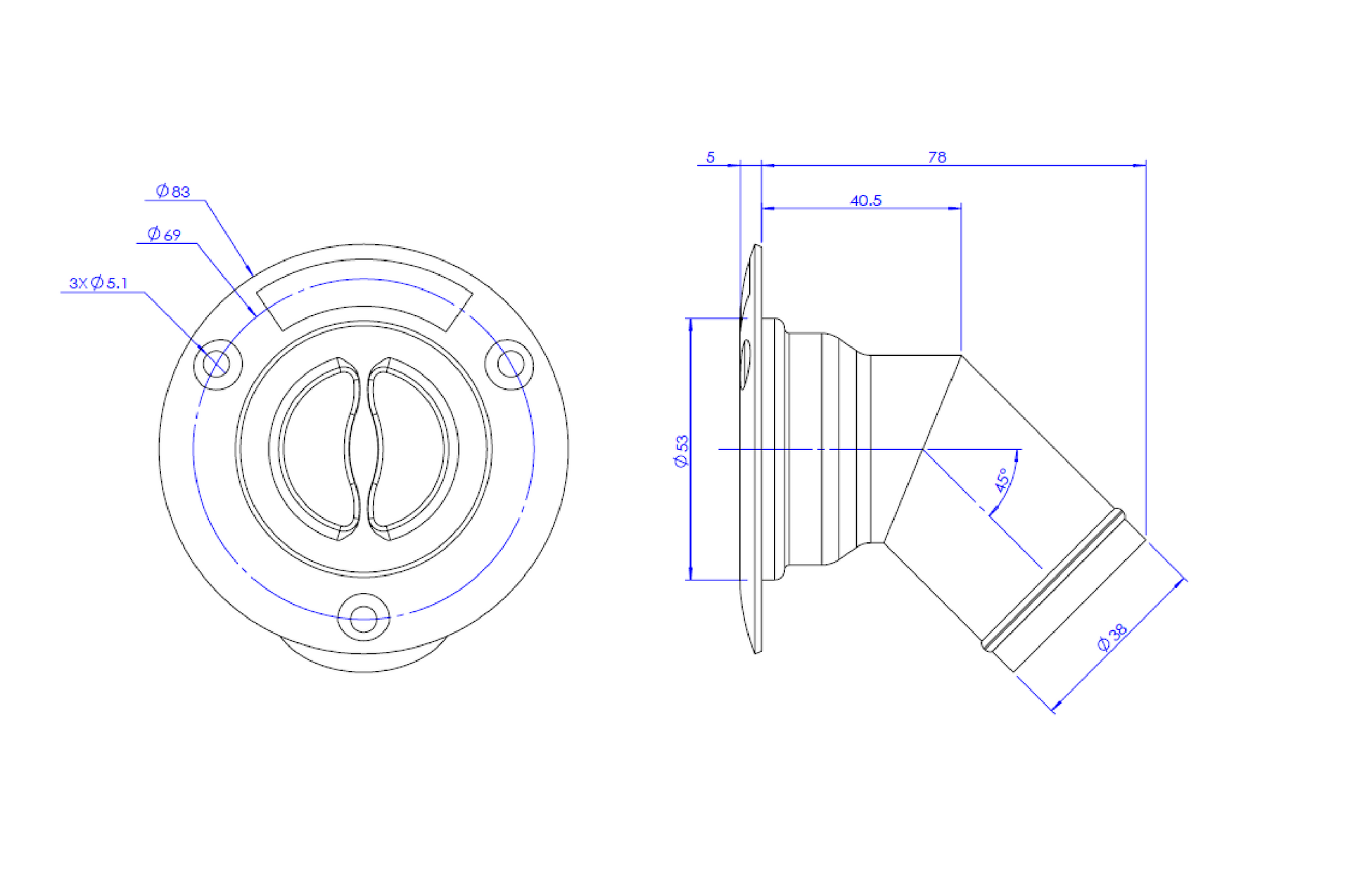 Tappo di carburante in acciaio inox lucidato a specchio, dotato di maniglia di apertura integrata e catenella di sicurezza. Nuova versione con tappo microfuso di alta qualità. Il raccordo inclinato a 45° è ideale per i piani di rifornimento inclinati.
