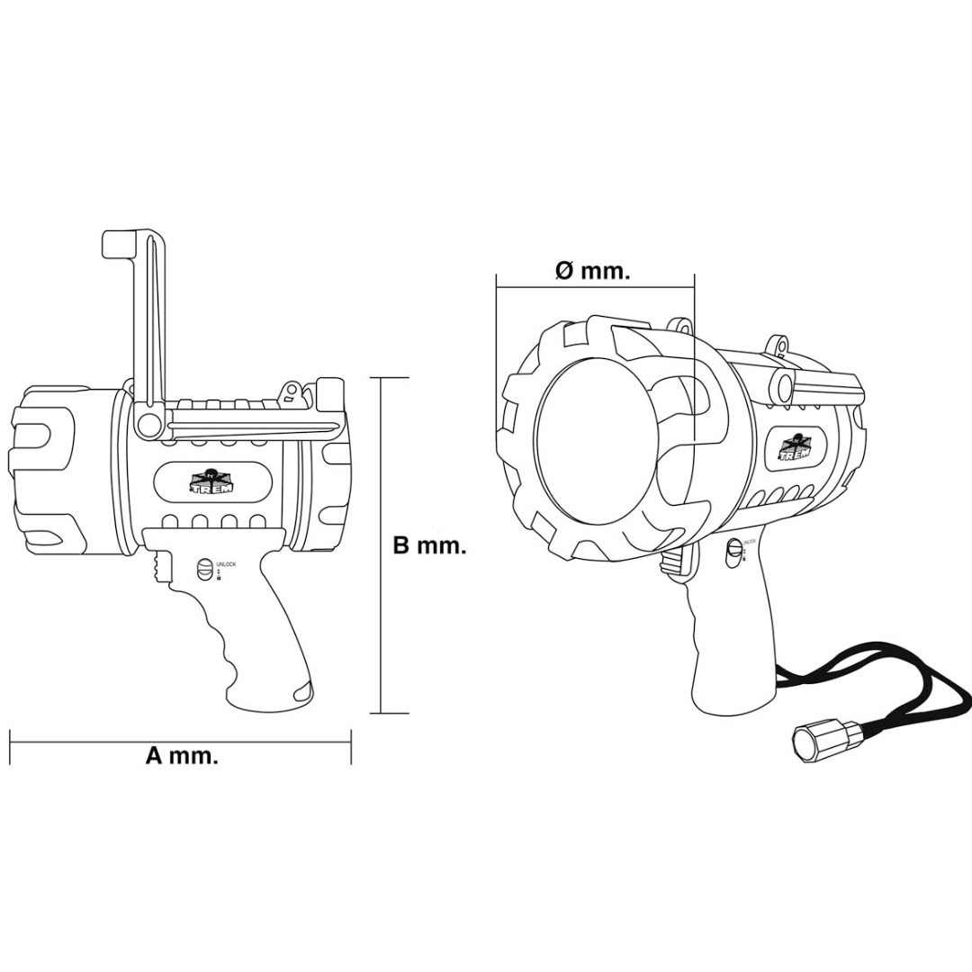 Realizzato con corpo in ABS e caucciù, il proettore LED impermeabile da 270 Lumen dispone di 3 modalità luminose: intensa, standard e SOS. Con la funzione di blocco pulsante, la luce può essere mantenuta fissa. Questo dispositivo impermeabile fino a 1 metro, impermeabilità IP 67 e ha un colore giallo fluo. Funziona con 3 batterie (non incluse).