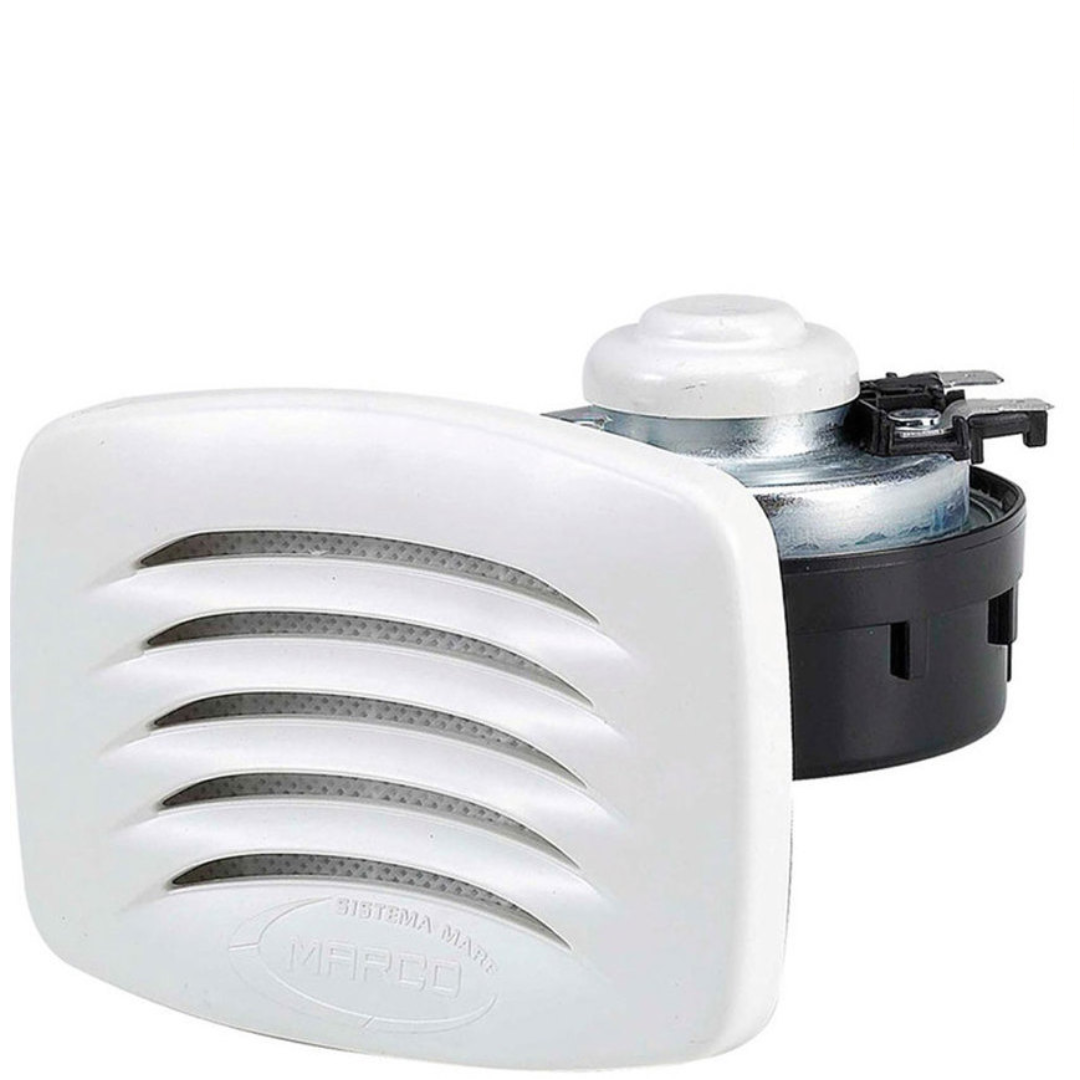 Tromba elettromagnetica ad incasso per imbarcazioni, gommoni e barche a vela fino a 12 metri. Ad incasso con sistema rapido a bottone. Tromba con suono potente a timbro marino. Made in italy.